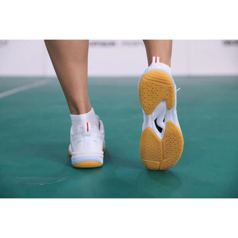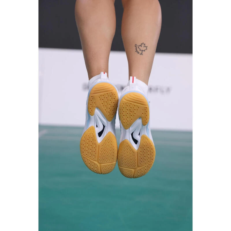 8784976Voor gevorderde badmintonspeelsters op zoek naar schoenen die tegelijk licht en dempend zijn!Een schoen voor gevorderde speelsters op zoek naar lichte schoenen met een goede demping aan de hiel om sneller te bewegen en een uitstekende verluchting om hun schoenen lang mee te laten gaan