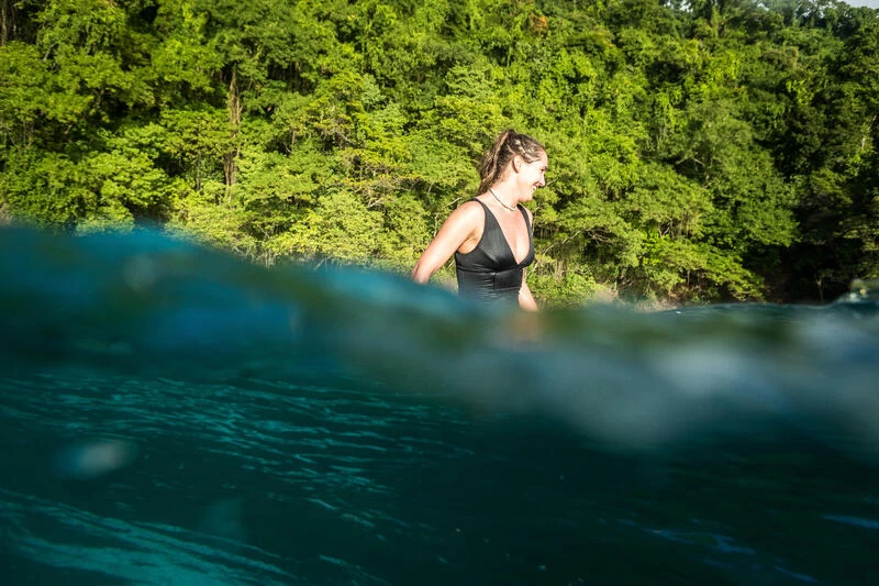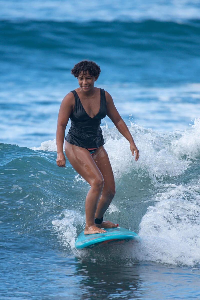 8647489Ons team met surfsters van elk niveau ontwikkelde deze badkleding voor beginnende surfsters die op kleine golfjes surfen.Deze tankini met V-hals en -rug is supervrouwelijk. Hij biedt de bedekking van een badpak en laat tegelijk je boven- en onderlichaam mooi uitkomen. Uitneembare pads.