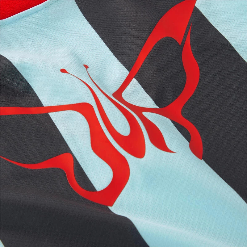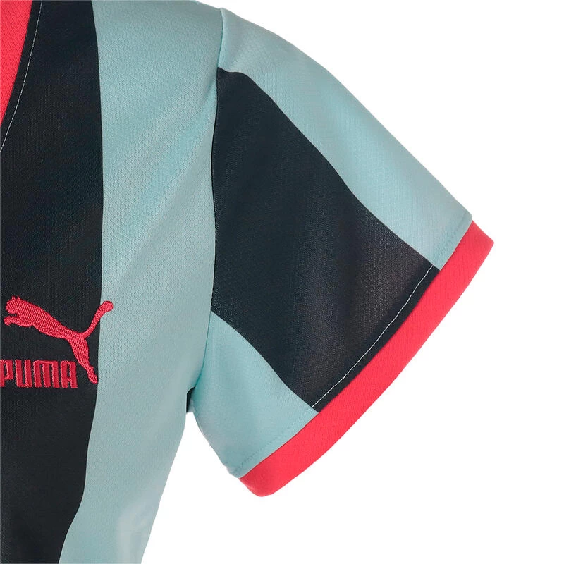 PRODUCT HISTORY Het tweede seizoen van de PUMA x DUA LIPA collectie is beschikbaar. De collectie van dit seizoen mixt streetwear-stijl en sportieve looks met op rave geïnspireerde kleuren en grafische patronen uit de jaren 1990 en roept de basketbal- en voetbalcultuur op. Naast DUA LIPA’s iconische vlinderborduursel op de rug, een knipoog naar het popicoon, heeft dit nauwsluitende T-shirt een flatteuze V-hals en een dubbelzijdige jacquardstof met een all-over streepprint, zodat je het bij elke outfit kunt dragen. KENMERKEN + VOORDELEN Gerecycleerde inhoud: gemaakt met minimaal 20% gerecycleerde materialen, een stap naar een betere toekomst.miDori: gemaakt met de miDori® bioWick organische afwerking DETAILGetailleerde pasvormSolid stof band bij de hals en mouwenV-halslijnGeborduurd PUMA Archive No. 1 op de borstIconische Dua Lipa vlinder geborduurd op de rug