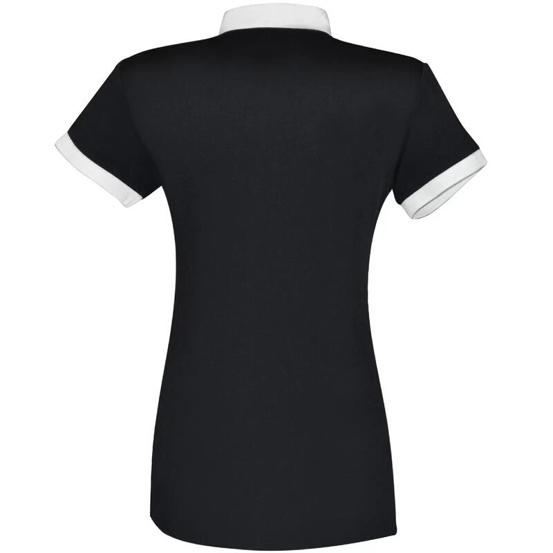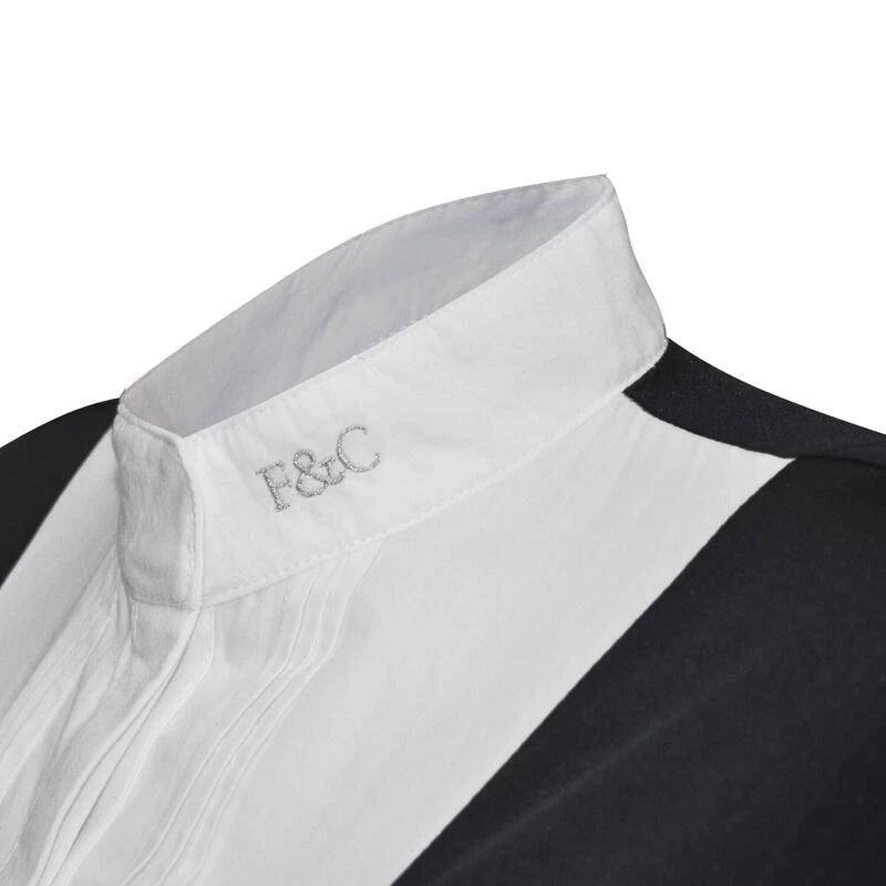 Damespolo van bi-materiaal die elegantie en comfort combineert voor uw wedstrijden. De elegantie van een geraffineerd wedstrijdshirt met zijn volledig geplooide voorkant. Het comfort van een zachte, lichte, comfortabele en ademende technische polo. Verborgen knoopsluiting. Geribbelde mouwranden. Zilveren F&C borduursel op de kraag (met magneetsluiting). Samenstelling : voorpand : 60% katoen 38% polyamide 2% elastische popeline. lijfje : 95% polyester 5% elastische jersey.