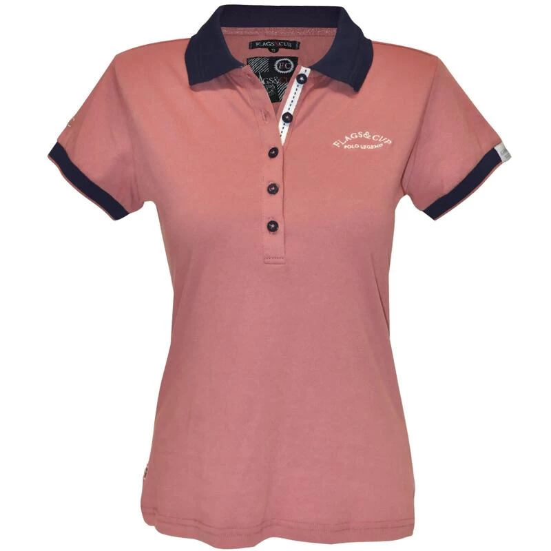 Poloshirt met korte mouwen van zeer elegant, comfortabel en vrouwelijk jersey katoen. Kraag en mouwranden met contrasterende ribbels. Achterkant van de kraag en onderkant van de mouwen met ribbels versierd met zilverdraad. Contrasterende binnenste knoopsgatsluiting met contrasterende middennaad. Vlaggen en Cup hart borduurwerk. F&C borduursel op rechtermouw. Contrasterende geweven label op linker mouw. Metalen klinknagel op rechterheup. Zilveren geribbelde zijsplitten en contrasterende band. Samenstelling : 100% katoen.