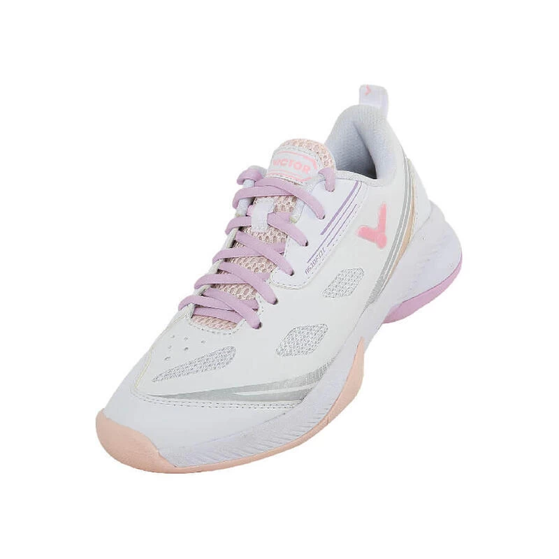 De Victor SH-A 610 III White/Pink is van zeer hoge kwaliteit en is de opvolger van de Victor A610 II. De schokabsorberende kern, het ‘Energymax 3.0 systeem’, en de veerkrachtige EVA-laag™ ‘Resilient’, zorgen voor een aangenaam zachte zool.