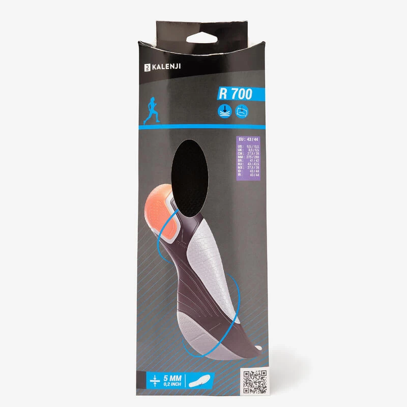 8758188Ons team van gepassioneerde hardlopers ontwikkelde deze inlegzool voor wie meer schokdemping wil tijdens het hardlopenDeze inlegzool is ontwikkeld om de voet te begeleiden bij zijn 3 functies en heeft daarom 3 zones van verschillende hardheid om demping, comfort en afzetkracht te garanderen met een dikte van 5 mm.