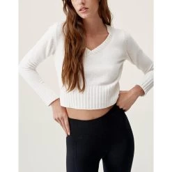 Trui met kort patroon, met V-hals. Zeer veelzijdig te combineren met je legging of een ander kledingstuk. · Duurzame vezels · 4-way stretchstof · Extra zacht aanvoelend · Warme stof