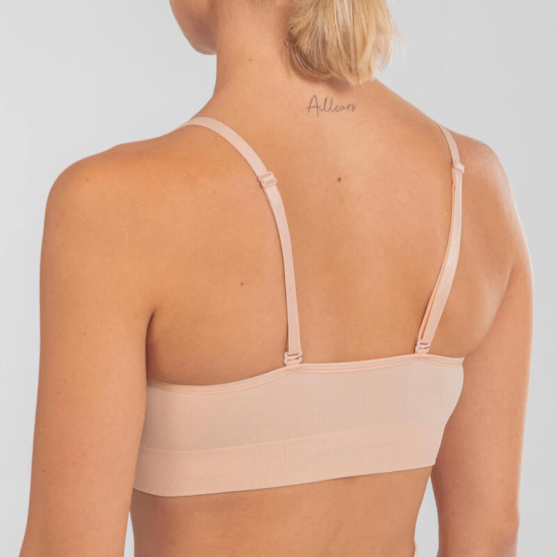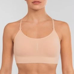 Inclusief: 1 set doorzichtige bandjes.Op zoek naar een sportbeha voor voorstellingen modern jazz of hedendaagse dans? Deze beha in een discreet model en rekbare stof sluit perfect op je lichaam aan. Comfort en discretie gegarandeerd.