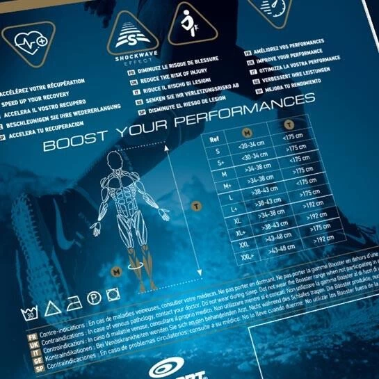 Vind de 2 belangrijkste producten van BV SPORT in een enkele verpakking. De EVO2 Booster voor de inspanning die het toppunt vormt van de selectieve compressie, en de herstelsok ProRecup Elite EVO die een snelle afvoer van het veneuze bloed mogelijk maakt dat slecht van zuurstof is voorzien en vol zit met toxines (melkzuren, vrije radicalen, CO2…)