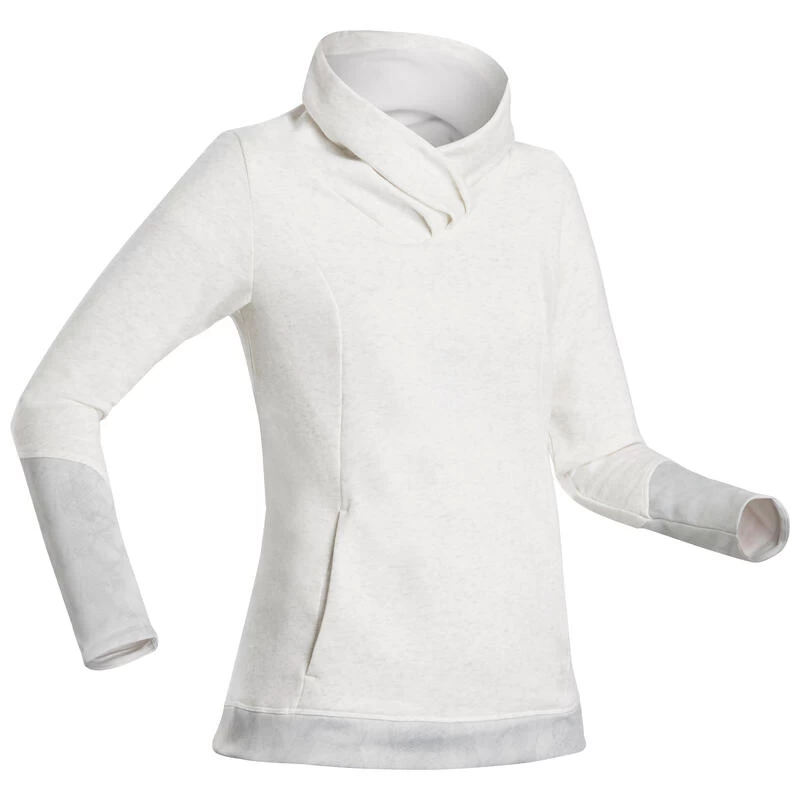 8551543Deze warme sweater werd ontwikkeld voor natuurwandelingen bij fris weer. Zacht en praktisch, houdt je warm tijdens het lopen.Een comfortabele en heel vrouwelijke sweater die je goed warm houdt dankzij de grote, zachte kraag en het lange rugpand. Handig op wandeltochten: in de buidelzak zit een afsluitbare binnenzak verborgen.
