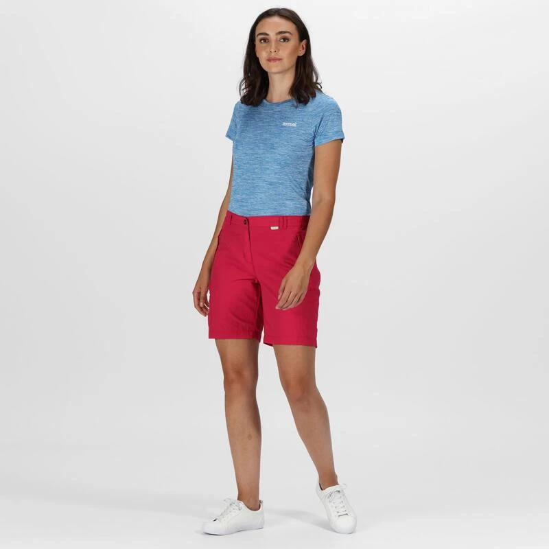 De Chaska II korte broek voor dames is een lichtgewichte en regenbestendige korte broek voor wandelingen, trektochten en reizen bij warm weer.