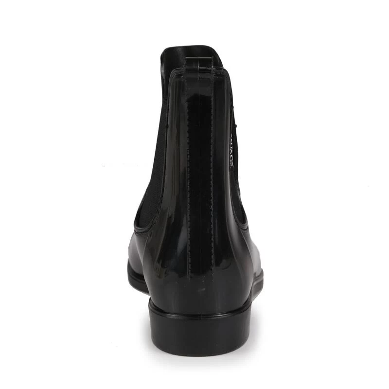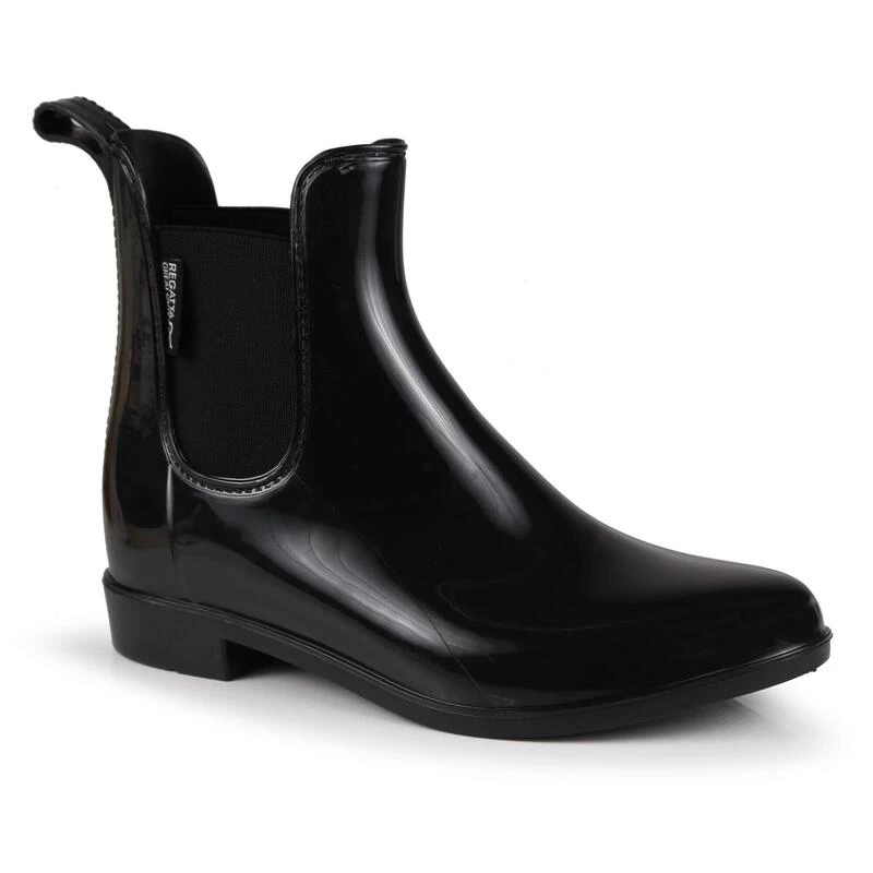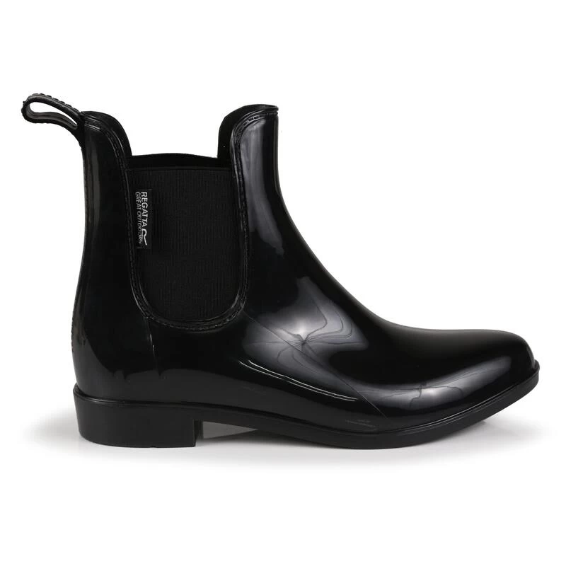 De Lady Harriet lage laars van Regatta heeft een glimmende PVC-constructie met aan weerszijden elastiek voor eenvoudig aan- en uittrekken. Het EVA-voetbed en het diepe profiel bieden comfort en ondersteuning.