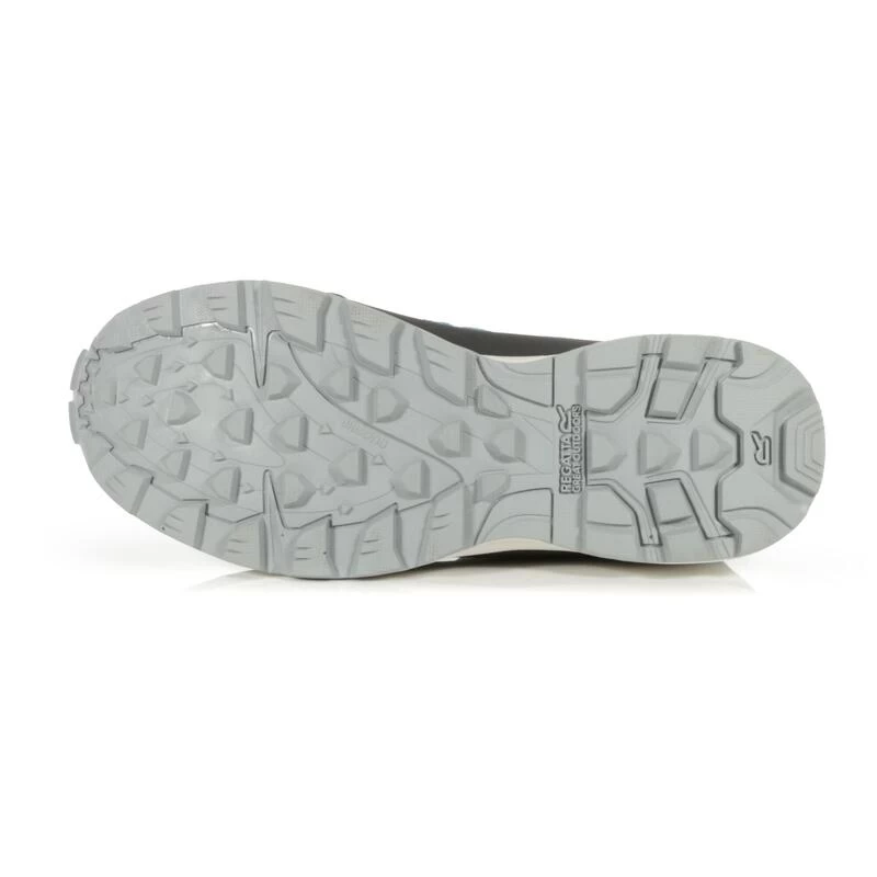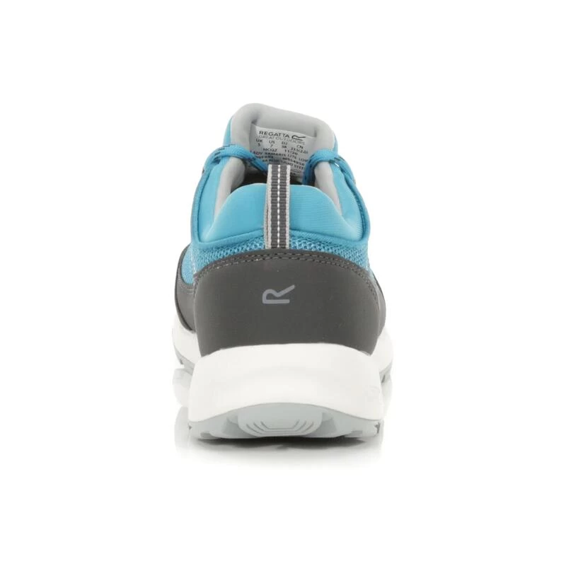 De Lady Samaris Lite Low Walking Shoe van Regatta is super lichtgewicht en biedt een uitzonderlijk ademend vermogen met een waterbestendige Isotex-membraanvoering en gedempte EVA-middenzool. Lichtgewicht tech-mesh bovenmateriaal met waterafstotende Hydropel-technologie houdt de voeten droog van binnen en van buiten. De eenvoudige aan/uit-sokpasvorm zorgt voor compact comfort en laat de voeten ademen onder warme omstandigheden. De stevige rubberen buitenzool biedt grip op losse paden en modderige oevers. Geschikt voor veganisten. Gewicht: 299 gram.