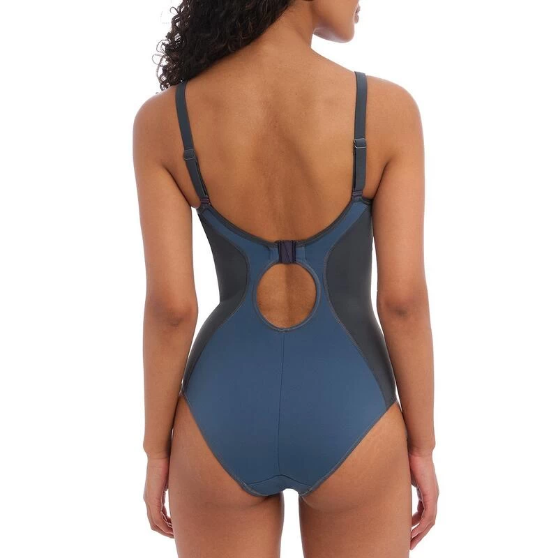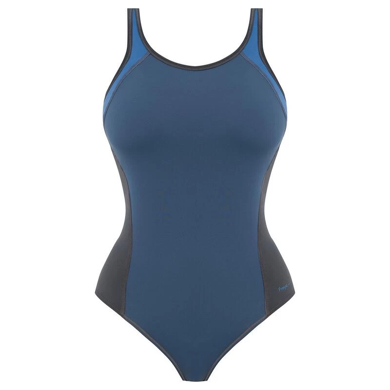 - Ingebouwde beha om je de steun te geven die je nodig hebt.- Gevoelige, sneldrogende stof ontworpen om chloor en tijd te weerstaan.- Voorgevormde cup met beugel- Verstelbare en afneembare bandjes- Beugel die bestand is tegen doorprikken- Zachte, stijve simplex binnenschalen voor optimale steun en comfort Het Freestyle denim eendelig sport zwempak van Freya Active biedt uitstekende ondersteuning, zelfs voor grote borsten! Dit zwempak heeft een beugelbeha met voorgevormde cups die volledig onzichtbaar is. Het heeft verstelbare bandjes op de rug, die al dan niet gekruist kunnen worden. Wij houden van het comfort en de efficiëntie van dit zwempak dat het figuur verfijnt.[Als Europees merk garandeert de fabrikant, Freya Active een product van hoge kwaliteit met een lange levensduur en een zorgvuldige afwerking.