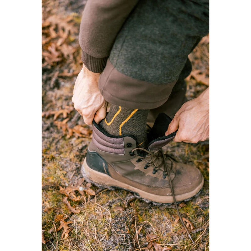 8577560Ons team van fervente jagers ontwikkelde deze sokken die je voeten goed warm houden als je stilzit of stilstaat bij temperaturen onder het vriespuntSta je in de winter op vaste post bij de drijf- of bersjacht? Deze dikke sokken in merinowol helpen je om je concentratie te behouden in de bijtende koude.