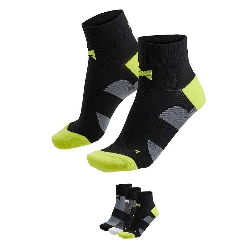 Cross your limits met deze cycling sokken van Xtreme sportswear. Of je nu gaat fietsen, mountainbiken of wielrennen, deze sokken bieden jou een perfecte ondersteuning en bescherming. De absorberende en sneldrogende eigenschappen van het materiaal en de open structuur op de wreef zorgen voor droge en koele voeten. Het anatomisch gevormde voetbed van de sok en de badstof teen en hak, beschermen de voeten en verminderen drukpunten. De niet knellende boord, het ondersteunende rib detail op de wreef en de perfecte naadloze pasvorm zorgen voor een optimaal draagcomfort. Tevens is deze sok voorzien van een kleine reflectie print op de hiel, waardoor je ook zichtbaar bent in donkere weersomstandigheden.
