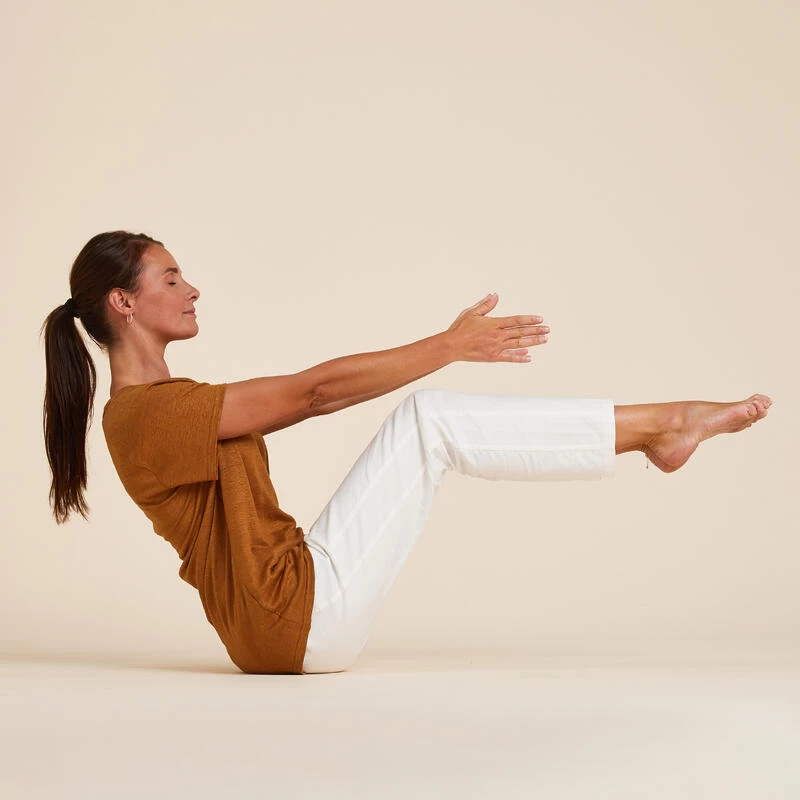 8649949Ontdek ons allereerste ecovriendelijke T-shirt in 100% Frans linnen voor zachte yoga en meditatie!De zomer komt eraan, tijd om je te laten verleiden door dit linnen T-shirt dat heerlijk koel aanvoelt. Een loose fit en een stof die soepel zodat je stijlvol zo van de yogamat naar kantoor kunt.